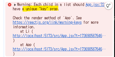 - React는 각 요소에 고유한 key가 필요하다고 경고 메시지를 출력 -> console 창 보기 싫음!