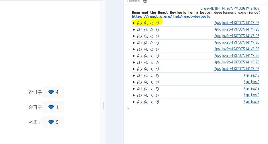 let [구이름, 구이름변경] = useState(['강남구', '송파구', '서초구']);