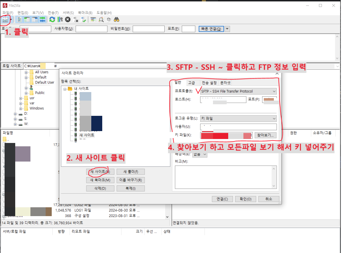 [원격 연결 프로그램] FileZilla 비밀번호를 ssh(.pem)로 로그인하기 본문