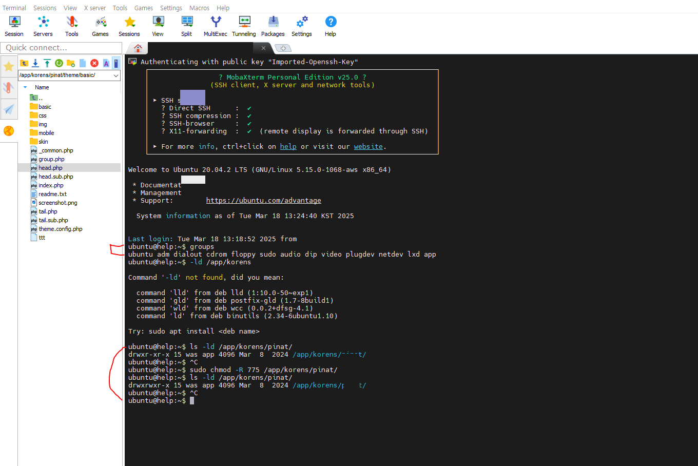 ⬛️ [MobaXterm] FTP 폴더 권한, Error #3 permission defined 본문