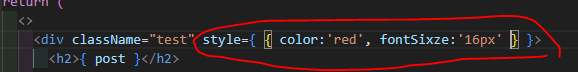 inline style 작성 -> 중괄호