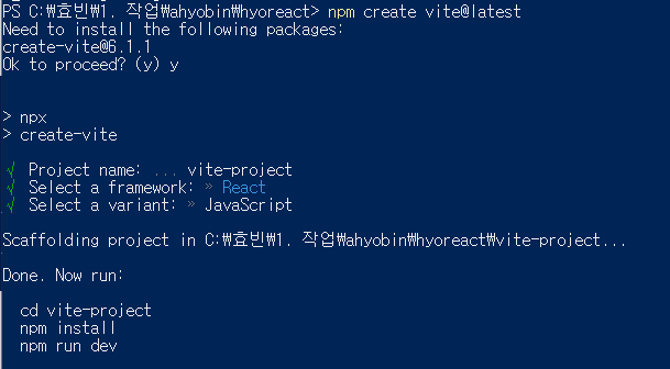 npm create vite@latest 를 이용해서 설치했다.